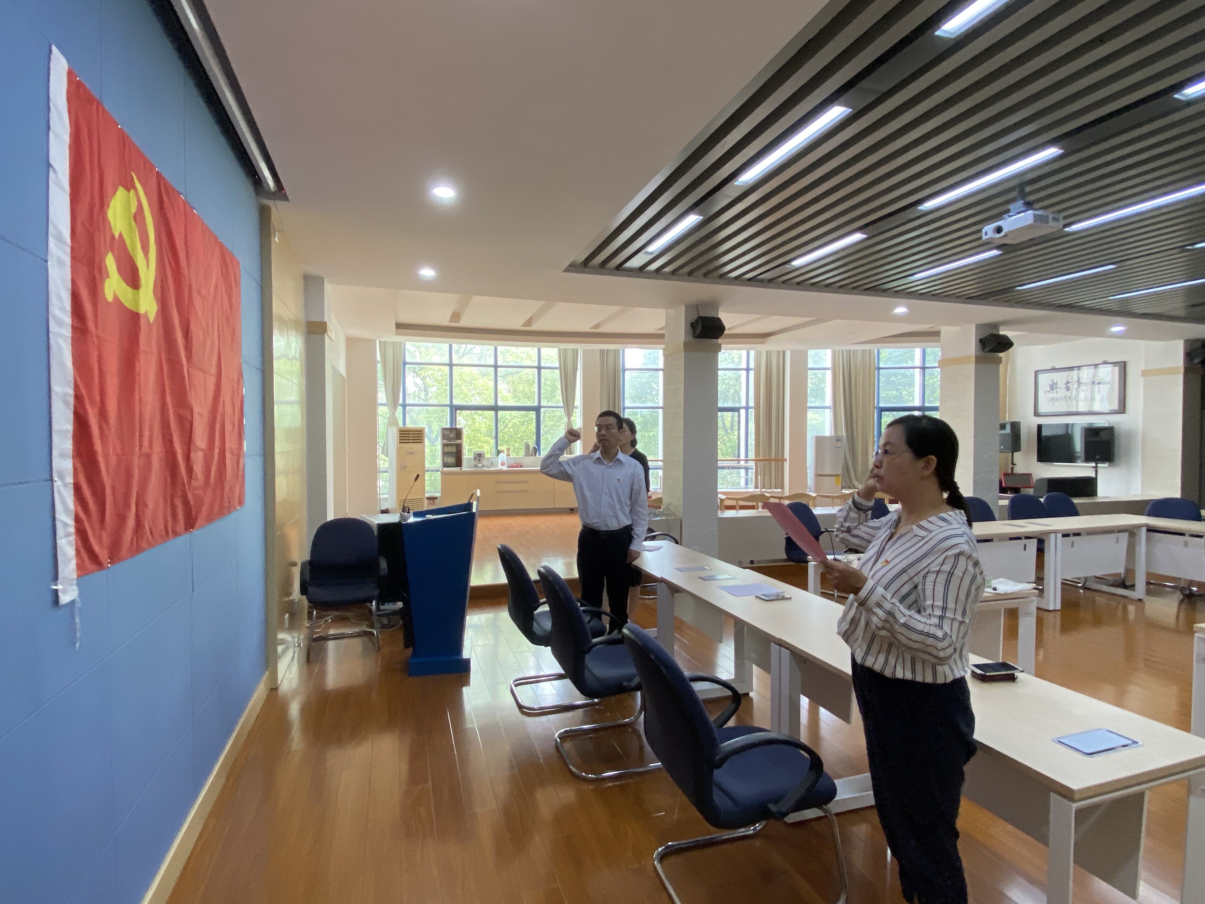 宣誓活动在《国际歌》中拉开帷幕。快猫短视频 党委副书记张炜老师带领全体党员面向党旗庄严宣誓,在誓词中,大家共同感受初心与使命之重,感受砥砺前行、继续奋斗的历史召唤和时代责任。