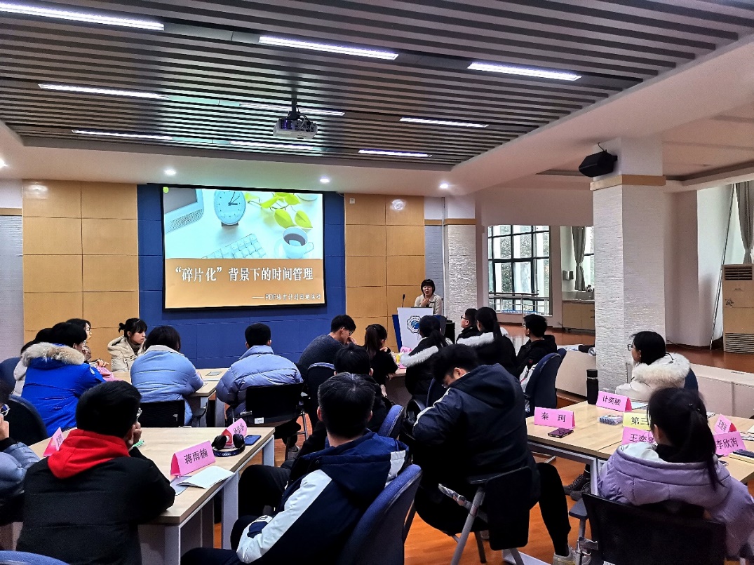 12月29日,能电院组织学生骨干代表开展以“‘碎片化’背景下的时间管理”为主题的生涯教育团体辅导。活动围绕低年级学生面临的时间规划问题及困难展开,院团委书记、2020级本科生辅导员雷镕甄老师担任主讲,学生代表共计24人参加。