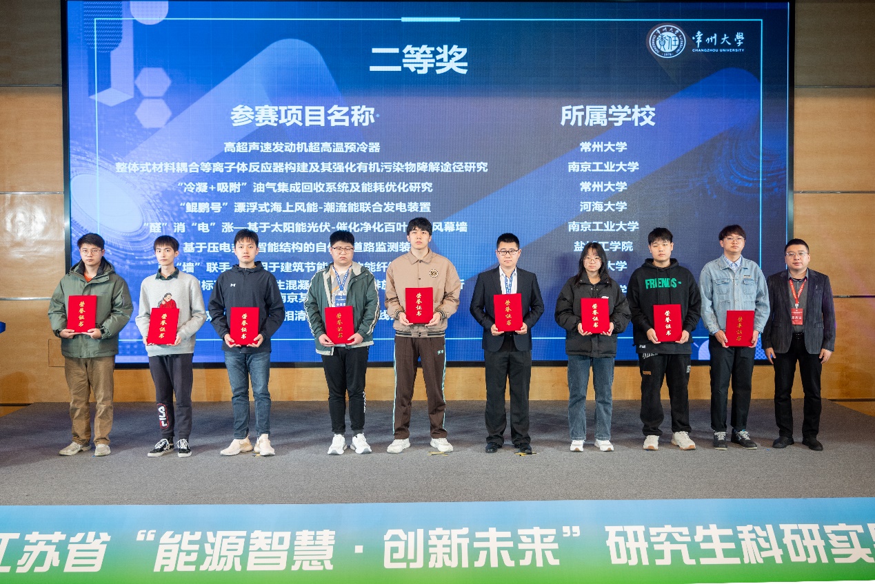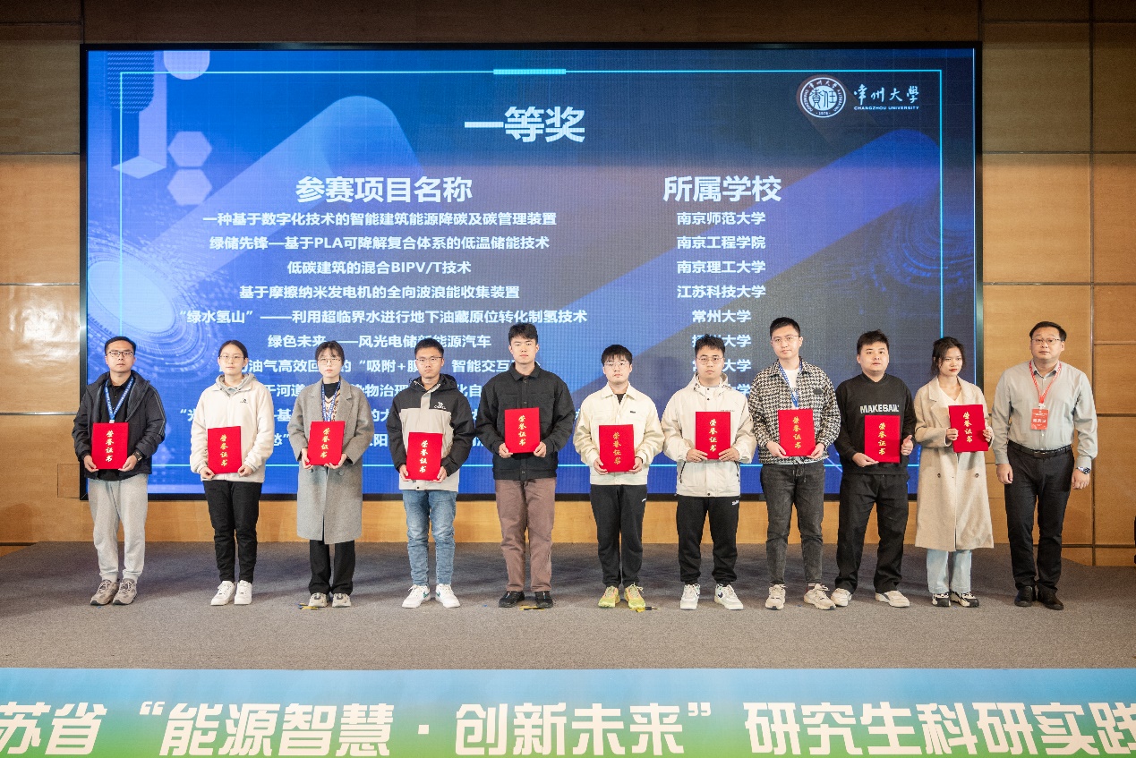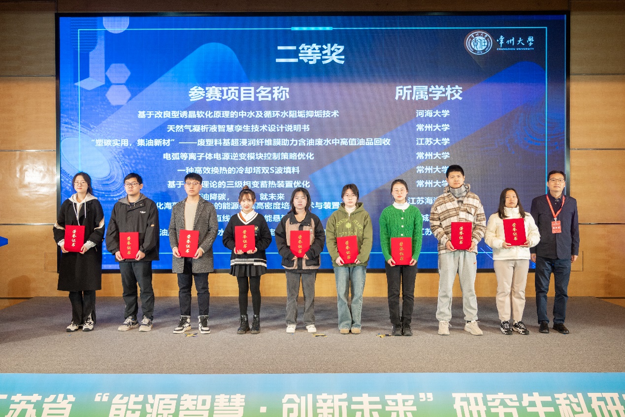 为贯彻落实“创新、协调、绿色、开放、共享”发展理念,响应国家“双碳”发展战略,全面推进能源生产和消费革命,构建清洁低碳、安全高效的能源体系,提升研究生创新、创意、创造、创业的意识和能力,在常州大学召开的2023年江苏省“能源智慧·创新未来”研究生科研实践大赛顺利落下帷幕。快猫短视频 共8支队伍参赛,其中有6支队伍来自快猫短视频,2支队伍来自环境快猫短视频 。经过师生们的共同努力,最终斩获特等奖1项,一等奖1项,二等奖3项,三等奖3项,并获“优秀组织奖”。
