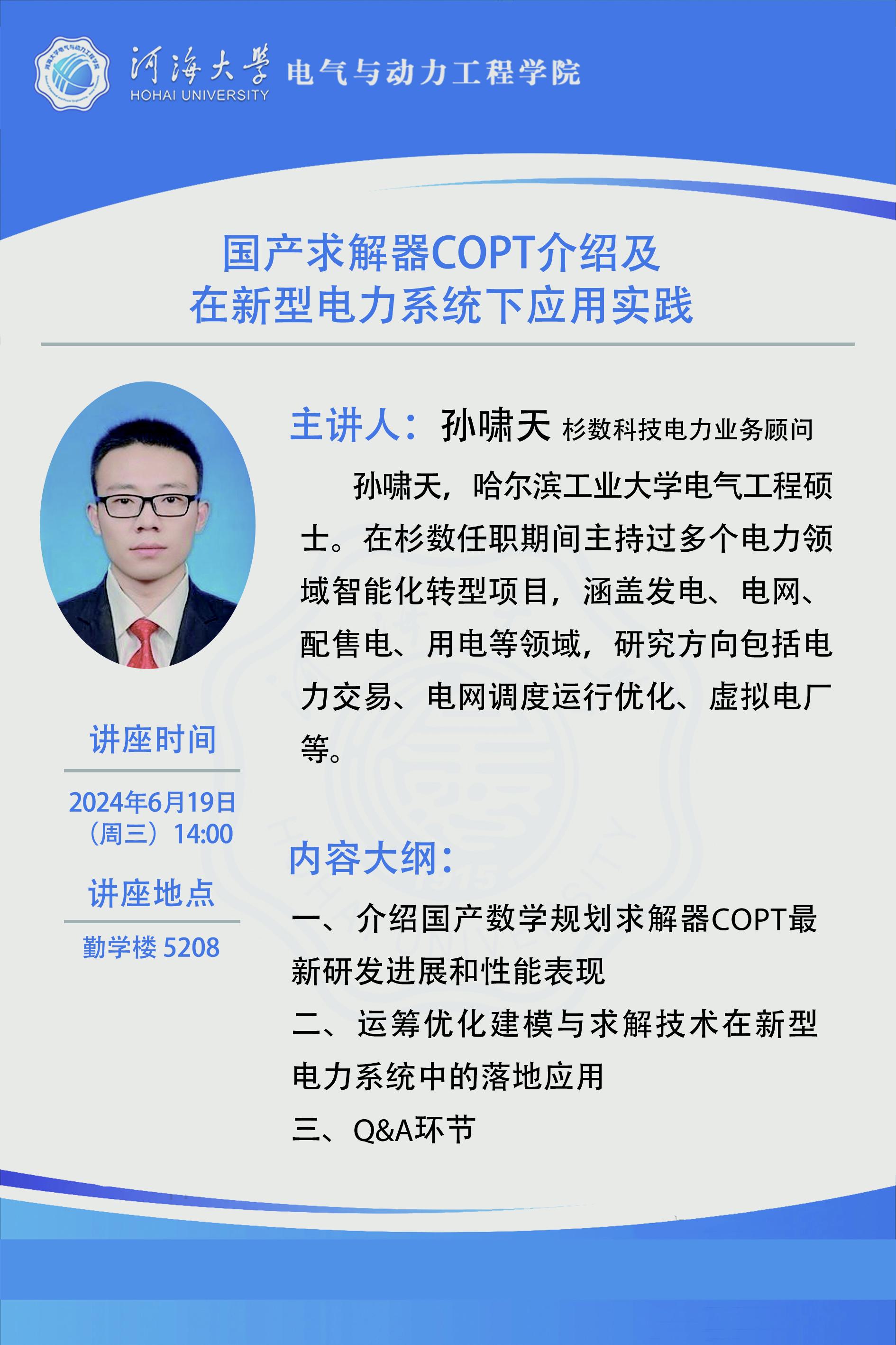 学术报告:国产求解器COPT介绍及在新型电力系统下应用实践