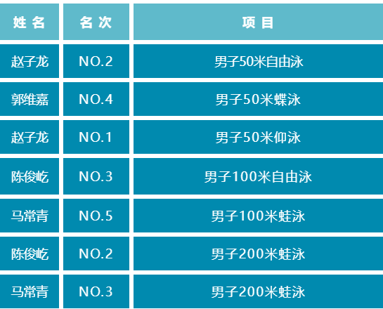本次比赛分为男子组和女子组,共有50米蝶泳、50米仰泳、50米蛙泳、50米自由泳、100米自由泳、100米蛙泳、200米自由泳、200米蛙泳八种项目。快猫短视频共有8名学生参赛,经过激烈角逐,获得男子50米仰泳第1名、男子50米自由泳第2名、男子200米蛙泳第2名、男子200米蛙泳第3名、男子100米自由泳第3名等成绩,展现了电气学子的拼搏精神和昂扬锐气。