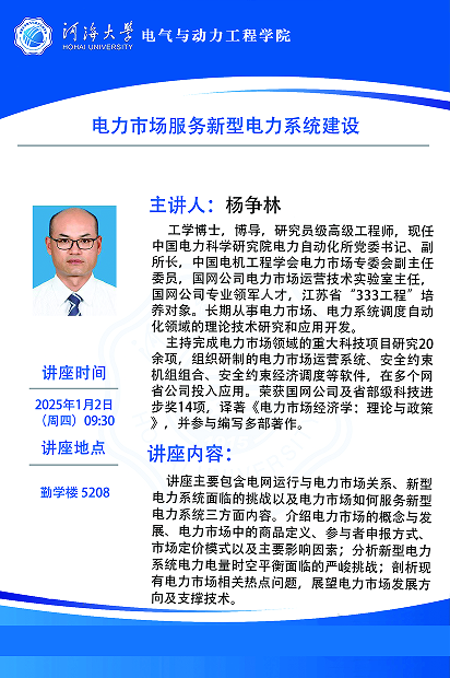 学术报告:电力市场服务新型电力系统建设
