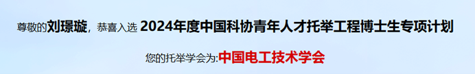 近期,中国科协公布了首批中国科协青年人才托举工程博士生专项计划入选者名单。经个人申报、学校遴选、省级科协推荐、中国科协专家评审、学会审核等环节,快猫短视频23级博士研究生刘璟璇(导师:臧海祥教授)成功入选,托举学会为中国电工技术学会,托举期为2025年1月至2026年12月。本次入选不仅是对该同学个人能力的高度认可,也是对快猫短视频推进高质量人才培养工作的肯定。