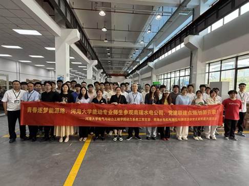 2025年5月22日,快猫短视频 动力系党支部曹林宁、潘虹、杨春霞、李城易、生丽莎等老师和2022级能源与动力工程专业本科学生党支部前往南京南瑞水利水电科技有限公司(以下简称为“南瑞水电”),联合开展“青春逐梦能源路,党建联建点燃创新引擎”主题党日活动。