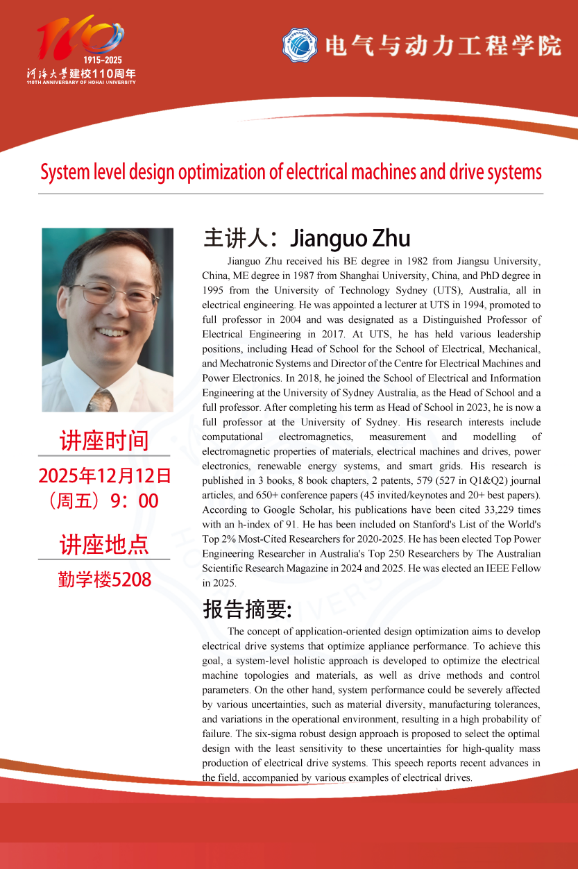 学术报告:System level design optimization of electrical machines and drive systems